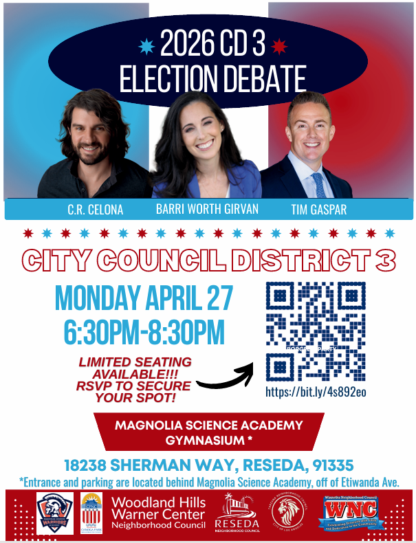 Right now, the Tarzana Neighborhood Council has openings on its board. If you live, work, or own real property in Tarzana, you may qualify for one of the following positions: Residential Renter; Homeowner; Business owner or employee; or as an At Large Representative. If you’re interested or would like more information please contact us at [email protected].
