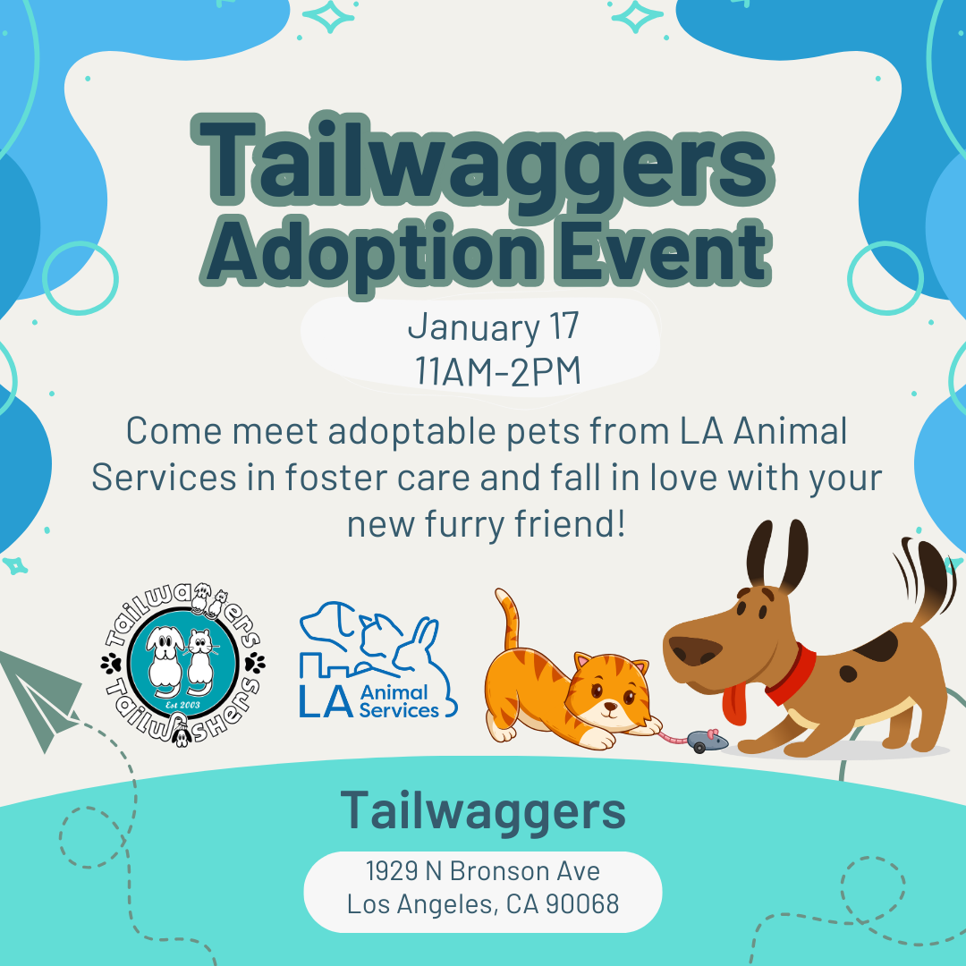 Also come meet adoptable pets January 17, 11 AM-2PM at the Tailwaggers Adoption Event at 1929 N Bronson Ave., LA 90068